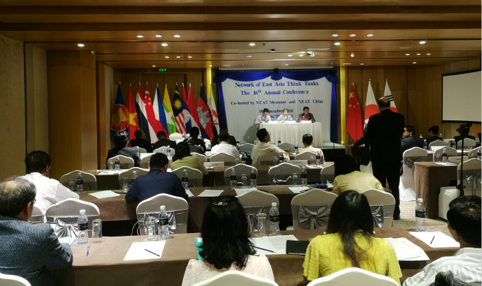 2018年9月17日,“东亚思想库网络第29次国家协调员会议暨第16次年会”在缅甸仰光召开。会议由beat365官方网站和缅甸国际战略研究所共同主办,来自东盟和中国、日本、韩国的NEAT国家协调员单位代表约45人参会。缅甸国际战略研究所主席U Nyunt Maung Shein出席了会议并致欢迎词。会议由亚洲所所长郭延军和NEAT缅甸国家协调员U Kyaw Myaing 共同主持。