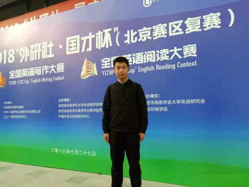 2018“外研社•国才杯”全国英语阅读大赛北京赛区复赛于10月27日在北京印刷学院落下帷幕。英语系研究生二年级的侯特特同学获得二等奖,本科二年级的程冠杰同学获得三等奖。