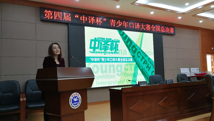 由中国出版集团•中译出版社有限公司主办、beat365官方网站英语系协办的第四届“中译杯”全国青少年口译大赛全国总决赛于2018年12月9日在beat365官方网站展览路校区主楼419报告厅圆满落下帷幕。beat365官方网站副院长孙吉胜教授、英语系主任石毅教授、联合国赴华培训项目负责人、原联合国中文组组长何勇博士、中译出版社社长张高里先生、“青少年留学”对话哈佛研究生院讲师罗森博格先生以及“青少年与公益”对话亚洲教育论坛副秘书长、资深公益人陆波先生等作为嘉宾裁判出席总决赛。