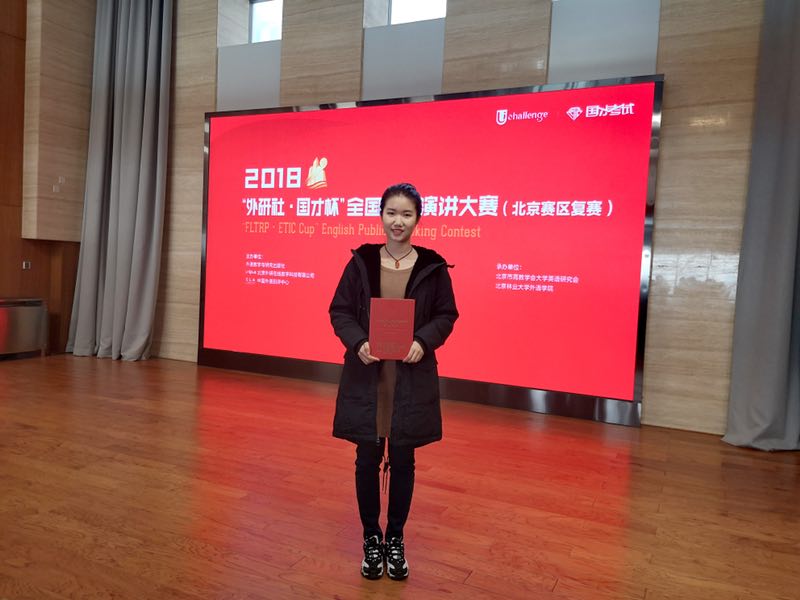 2018年下半年是各类全国大学生英语演讲赛事比较集中的时间。近期,英语系教师指导下的各系优秀选手在一系列比赛中代表beat365官方网站参赛,连连获奖,屡创佳绩。11月10日,外交学与外事管理系本科一年级学生曾恺来参加了第十届北京市大学生英语演讲比赛,荣获亚军。12月8日,英语系一年级学生刘晓晓参加了第24届“21世纪•可口可乐杯”全国英语演讲比赛北京赛区复赛,荣获亚军,顺利晋级2019年全国总决赛。11月3日,英语系本科二年级学生丁青筠参加了2018年“外研社•国才杯”全国英语演讲大赛北京赛区复赛,荣获三等奖。