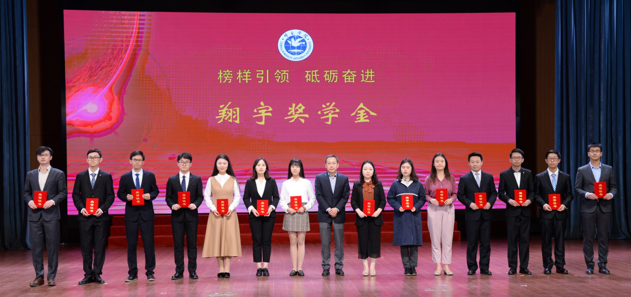 国际经济学院院长张翠珍为章文晋奖学金获奖代表颁发荣誉证书