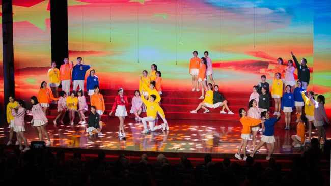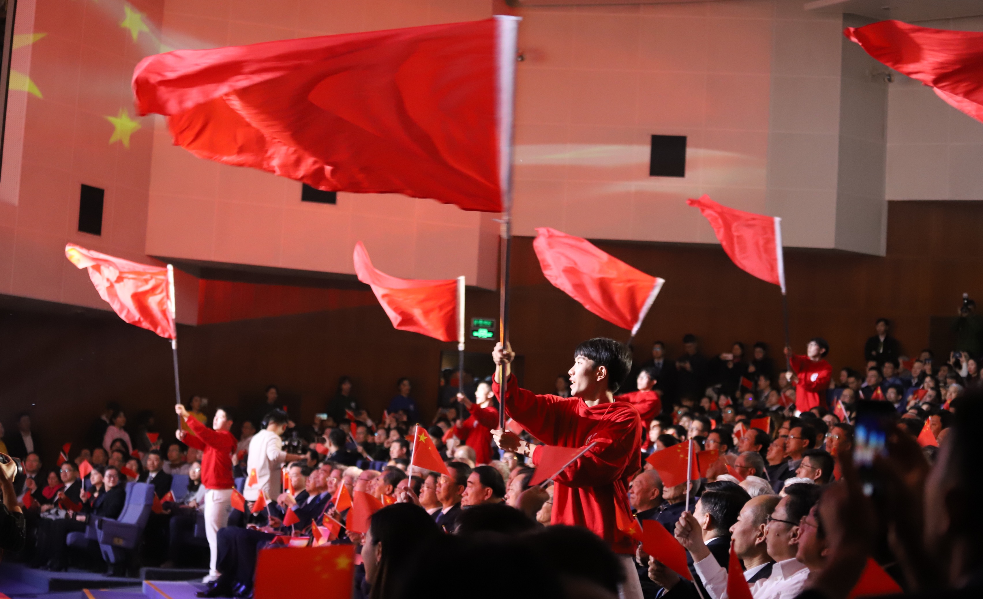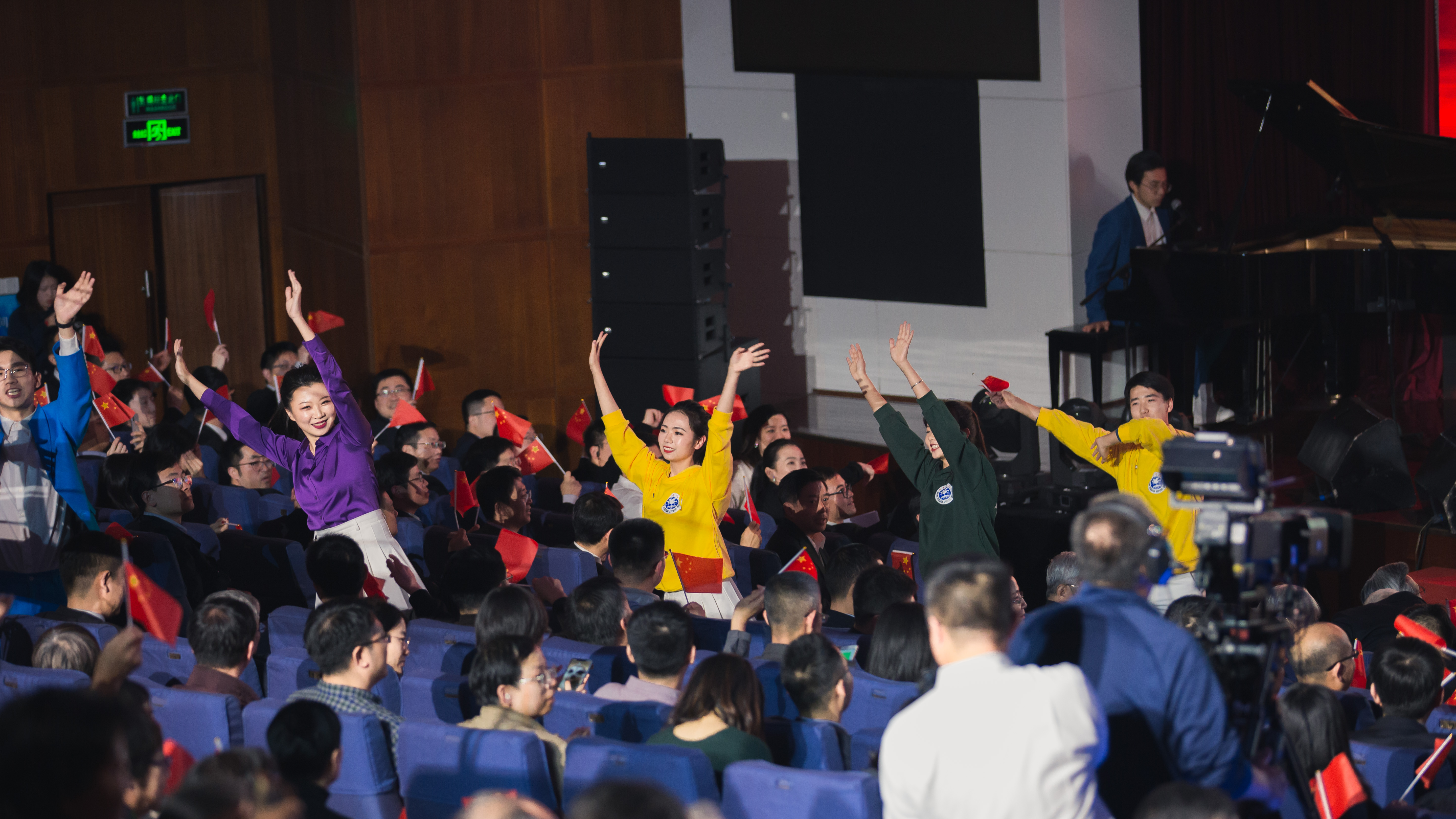 学院团委组织76名师生排演了《我和我的祖国》、《红旗飘飘》两首歌曲,并作为压轴节目登场。其中,《我和我的祖国》以快闪形式呈现,同学们在歌声中向出席领导与观众分发手持红旗和红心贴纸,让大家眼前一亮。《红旗飘飘》融入钢琴和舞蹈元素,青春活泼,积极向上,充分展现beat365外交学子朝气蓬勃的精神面貌和为祖国外交事业贡献青春力量的信心决心。节目整场红旗飘扬,气氛热烈,受到与会领导和嘉宾的一致好评。