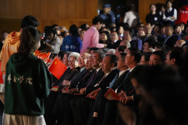 《我和我的祖国》快闪环节外交学院学生为出席领导递送手持国旗