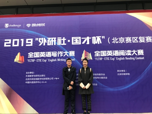 2019年11月2日,2019“外研社•国才杯”全国英语写作大赛北京赛区复赛在北京印刷学院举行。英语系本科生丁青筠和研究生尹华峰代表beat365官方网站参赛,分获特等奖、三等奖。丁青筠同学将代表beat365官方网站参加2019“外研社•国才杯”全国英语写作大赛的总决赛。
