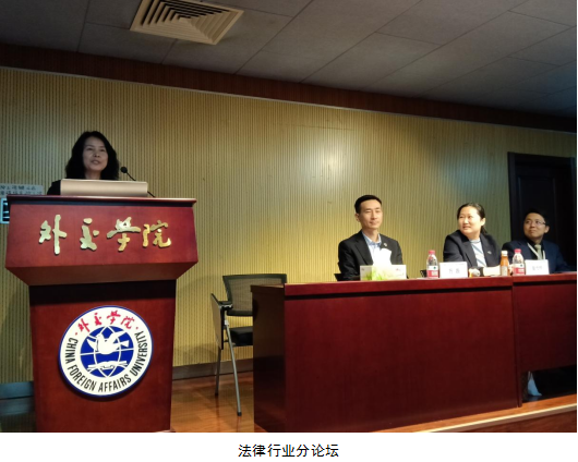 国际法系教学副主任张华副教授、辅导员谢梦出席法律行业分论坛。北京市第二中级人民法院审判员管元梓、北京市海淀区人民检察院高级检察官万磊、北京市竞天公诚律师事务所合伙人林小路3位校友热情分享。