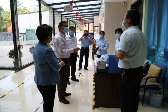 黄副主任对校医务室、学生公寓、食堂、学生返校室外接待处等进行实地视察,详细了解目前学院毕业生返校工作的整体安排,包括在校人数、预计返校人数、返校起止时间及分批情况、非毕业班线上教学情况、食堂及宿舍管理、隔离观察点管理、工勤人员管理、垃圾分类等问题。