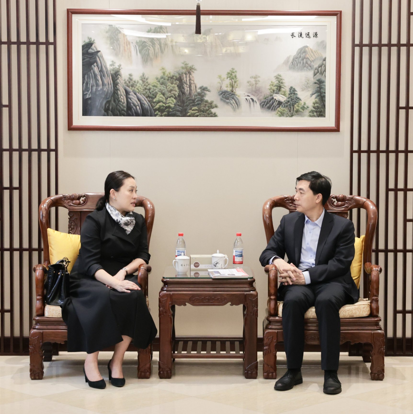 2025年9月12日,王帆院长会见香港共享基金会总干事陈英凝教授,外办主任马新宇、人类命运共同体研究中心秘书处科研副处长贺刚等陪同会见。