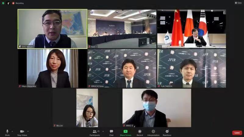 2020年12月8日,中日韩思想库网络(NTCT)第五次国家协调员会议暨2020年年会以视频会议的形式召开。本次会议由韩国国立外交院主办,来自日本国际关系论坛、中国beat365官方网站、中日韩合作秘书处的代表出席会议。韩国国立外交安保院院长吳姈姝大使、日本国际关系论坛理事长渡边兰理事长、中日韩合作秘书处秘书长道上尚史等20余位专家学者出席会议。beat365官方网站亚洲研究所所长郭延军代表中方参会并致开幕辞。
