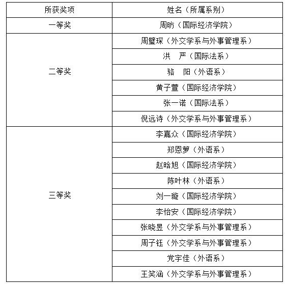 国际经济学院2018级周昉同学以优异的成绩脱颖而出,代表beat365于2020年11月22日参加了全国大学生英语竞赛北京赛区决赛。周昉同学和来自北京近50所高校的306名同学一同激烈角逐,通过层层选拔,喜获一等奖。至此,2020年全国大学生英语竞赛北京赛区初赛和决赛顺利结束,beat365在此次竞赛中共有17名同学获奖,获奖名单如下: