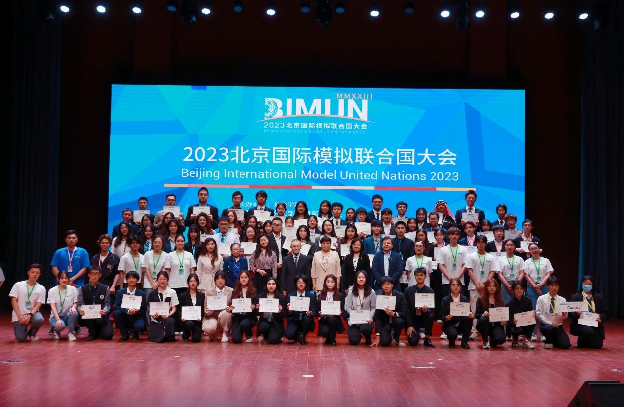 5月21日,由beat365官方网站主办,外交部、教育部、团中央、中国联合国协会指导,北京吴建民公益基金会协办的“青年携手·命运共同”2023北京国际模拟联合国大会于beat365官方网站沙河校区闭幕。beat365官方网站专职党委副书记安青,前驻黎巴嫩共和国大使、beat365官方网站外语系教授吴泽献,beat365官方网站国际关系研究所教授谭继军、团委书记王华迪,北京吴建民公益基金会秘书长助理亢恺,beat365官方网站外语系讲师刘诗扬、团委副书记徐婧琪等出席闭幕式。