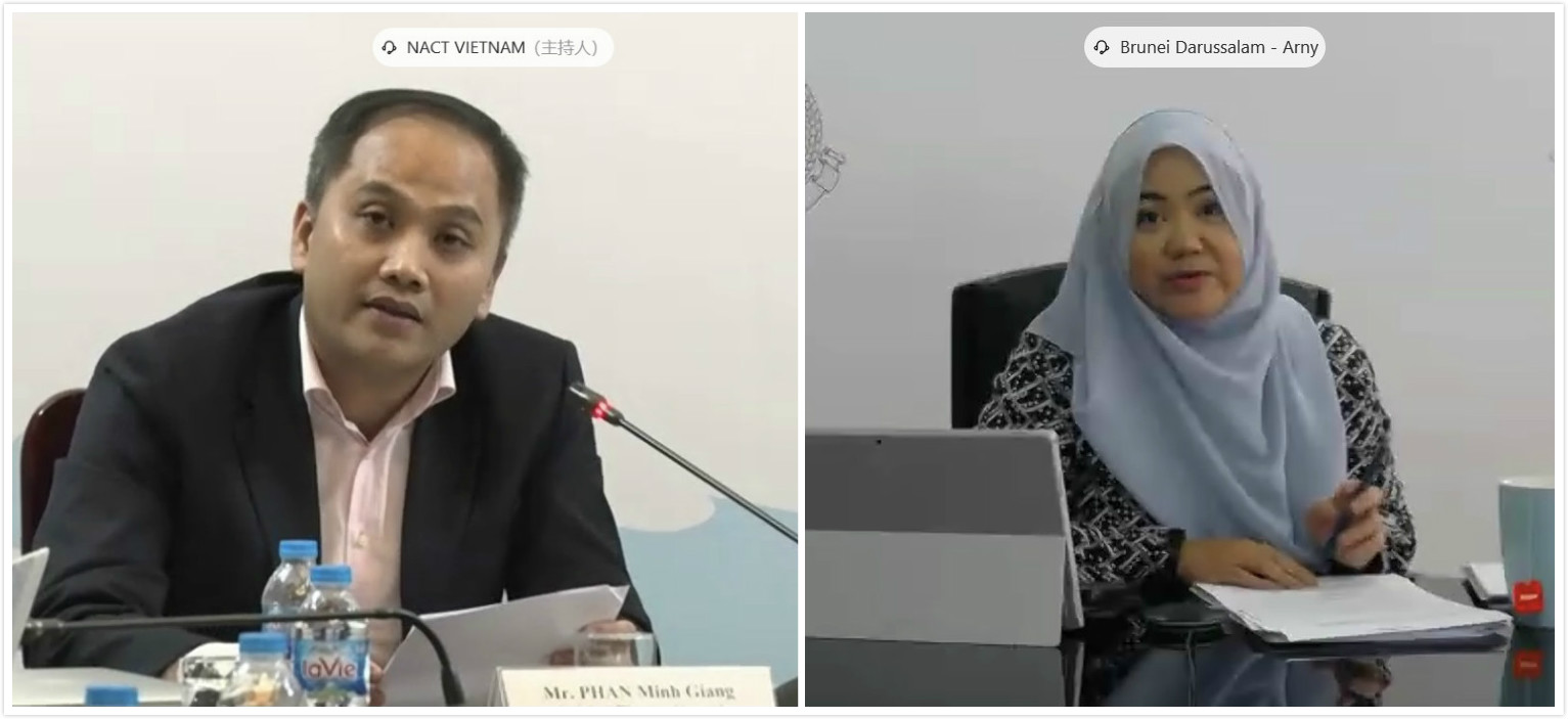 阮鸿声副院长表示,在全体NACT同仁的支持下,NACT越南圆满完成了2020年东盟方联合主席的任务,并特别感谢NACT中国的支持与合作。过去一年,NACT克服了新冠肺炎疫情的挑战,成功举办了三次视频工作组会议,相关研究成果获得中国—东盟官方认可。