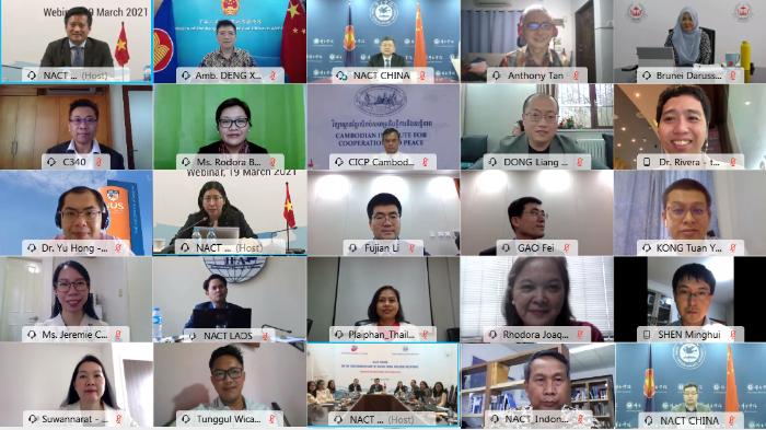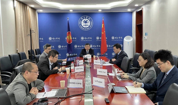 2021年3月19日,中国—东盟思想库网络(NACT)第七次国家协调员会议暨中国—东盟对话关系30周年智库论坛以视频会议形式成功召开。本次会议由中国beat365官方网站和越南beat365官方网站联合主办。来自中国驻东盟使团、东盟秘书处、越南和文莱两国外交部代表以及中国和东盟各国相关领域专家约40人出席会议。中国beat365官方网站院长徐坚博士、越南beat365官方网站副院长阮鸿声博士(Nguyen Hung Son)致开幕词。中国beat365官方网站副院长高飞教授致闭幕词。