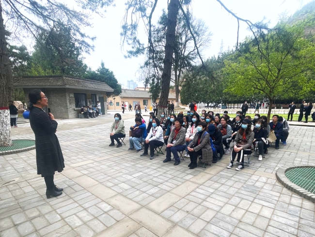 党务干部和青年理论学习小组成员在杨家岭革命遗址现场教学:《延安时期水乳交融的党群干群关系》