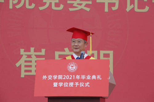beat365官方网站党委书记崔启明寄语2021届毕业生,并代表学院党委向所有圆满完成学业的毕业生致以美好的祝愿,向辛勤付出的老师们和家长们表示诚挚的谢意。崔书记勉励毕业生要立志报国,胸怀天下。希望同学们弘扬“中国外交官的摇篮”所特有的家国情怀、世界眼光,将个人的发展与国家的未来和民族的命运紧密结合起来;要知史爱党,服务人民。希望同学们从党的光辉历程中汲取经验智慧与精神力量,铭记光辉历史、传承红色基因、赓续精神血脉;要矢志奋斗,只争朝夕。希望同学们在艰苦奋斗中净化灵魂、磨砺意志、坚定信念,用奋斗成就人生之路;要响应号召,不负期望。希望同学们脚踏实地,砥砺奋进,积极响应习近平总书记在“七一”重要讲话中对新时代中国青年的号召,以实现中华民族伟大复兴为己任,以“七一勋章”获得者为榜样,不负时代,不负韶华,不负党和人民的殷切期望,在今后的工作中立足本职,追求卓越,善于在平凡的岗位上创造不平凡的业绩。最后崔书记祝愿同学们不忘初心,勇敢前行,前程似锦,相会有期。