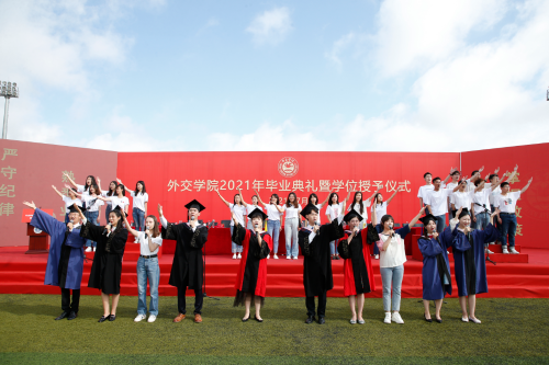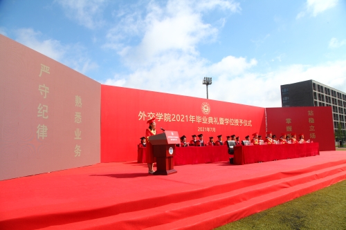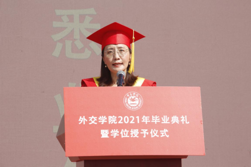 徐坚院长在致辞中,向2021届毕业生致以热烈祝贺,向辛勤培育的老师们表示衷心感谢,向辛苦付出的家长们致以崇高敬意。徐院长表示,同学们通过勤奋刻苦学习、积极参与实践,同学们为祖国外交事业注入新鲜血液,展示了beat365官方网站学子的靓丽风采、深刻的责任感和担当意识。徐院长表示,beat365官方网站学子始终以实现中华民族伟大复兴为己任,增强做中国人的志气、骨气、底气,不负时代,不负韶华,不负党和人民的殷切期望,希望同学们要牢记习近平总书记的嘱托,要牢记“站稳立场、掌握政策、熟悉业务、严守纪律”的校训,不忘初心,做到心中有党,永远跟党走;激扬青春理想,勇担时代使命,树立远大理想,勤学修身,笃行思辨。最后,徐院长祝愿2021届毕业生到祖国最需要的地方建功立业,在新的人生阶段大显身手、展示才华,前程似锦。期盼着同学们常回母校看看。