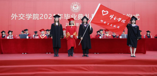国际法系唐靖同学作为本科生毕业生代表发言。唐靖同学代表全体本科生毕业生向母校、老师们、家长们和同学们表达了深深的感激之情。表示作为一名外院学子、将来的外院校友,更作为一名新时代青年,我们要谨遵校训精神,牢记习总书记的教诲,立大志、明大德、成大才、担大任,在奋斗中释放青春激情、追逐青春理想,以青春之我、奋斗之我,为中华民族伟大复兴铺路架桥,为祖国建设添砖加瓦。
