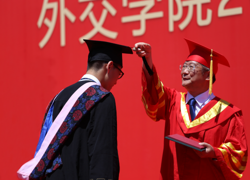 外交学与外事管理系本科生毕业生霍新同学的父亲作为毕业生家长代表致辞,向学院领导、老师和同学们表达家长们的感谢、祝贺和祝福。他表示,学院老师们的辛勤付出和不懈工作,使孩子们收获了知识,学会了做人做事,增长了才干,树立了远大的理想和抱负,取得了骄人的成绩。他叮嘱毕业生们毕业是一个终点,更是一个新的起点,要继续努力,不辜负曾经谆谆教导的老师、不辜负望子成龙的家长,不辜负无限荣光的母校,不辜负共度青春年华的同学,更不辜负这个伟大的国家和伟大的时代。