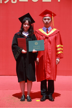 英语系徐然副教授作为教师代表发言。她表示,同学们经得起压力,在逆境中前行,积极调整自己,识大体、顾大局,以乐观积极的心态投入到紧张的学习生活中去,为同学们取得今天的骄人成绩而点赞,并勉励毕业生们谦虚谨慎、不骄不燥,业精于勤、抵御诱惑,多读书、读好书,加强体育锻炼,锻炼强健的体魄、健康的心理和坚强的意志,让锻炼成为一种习惯、一种生活理念,以饱满昂扬的精神面貌,投入到新的工作和学习中。