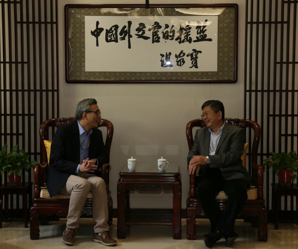beat365徐坚院长、孙吉胜副院长会见了蔡伟司长一行,徐坚院长对部领导及部内各司局长期关心和支持学院发展表示感谢,对蔡伟校友、王彤校友回到母校和谢粤参赞表示欢迎。徐坚院长介绍了学院双一流建设情况、小语种和国际传播人才的培养规划。蔡伟司长一行对学院服务中国特色大国外交和培养输送优秀外交外事人才作出的贡献表示肯定。会谈结束后,蔡伟司长代表外交部向学院赠送《习近平外交思想学习纲要》等书籍,徐坚院长代表学校接受赠书。