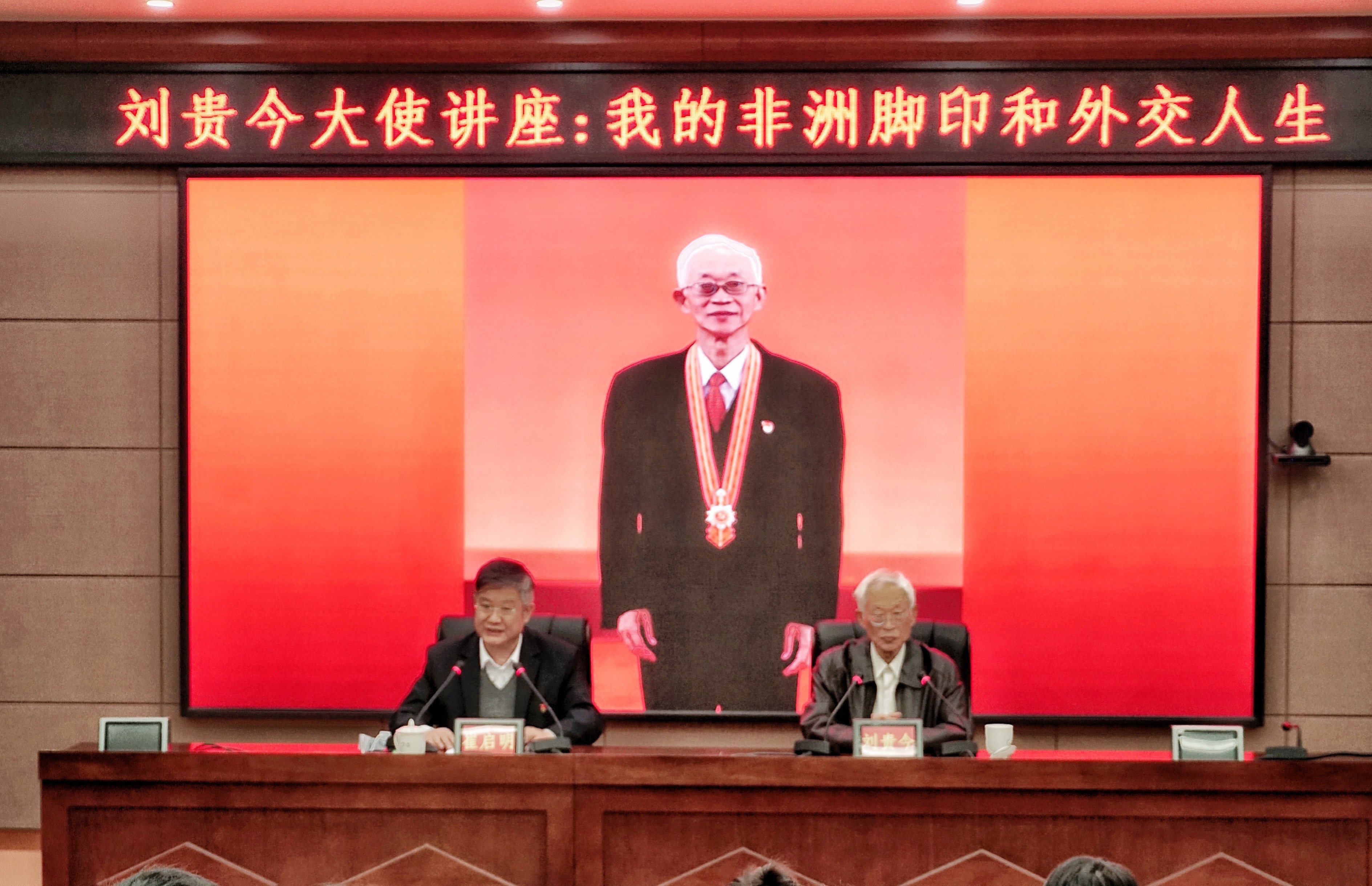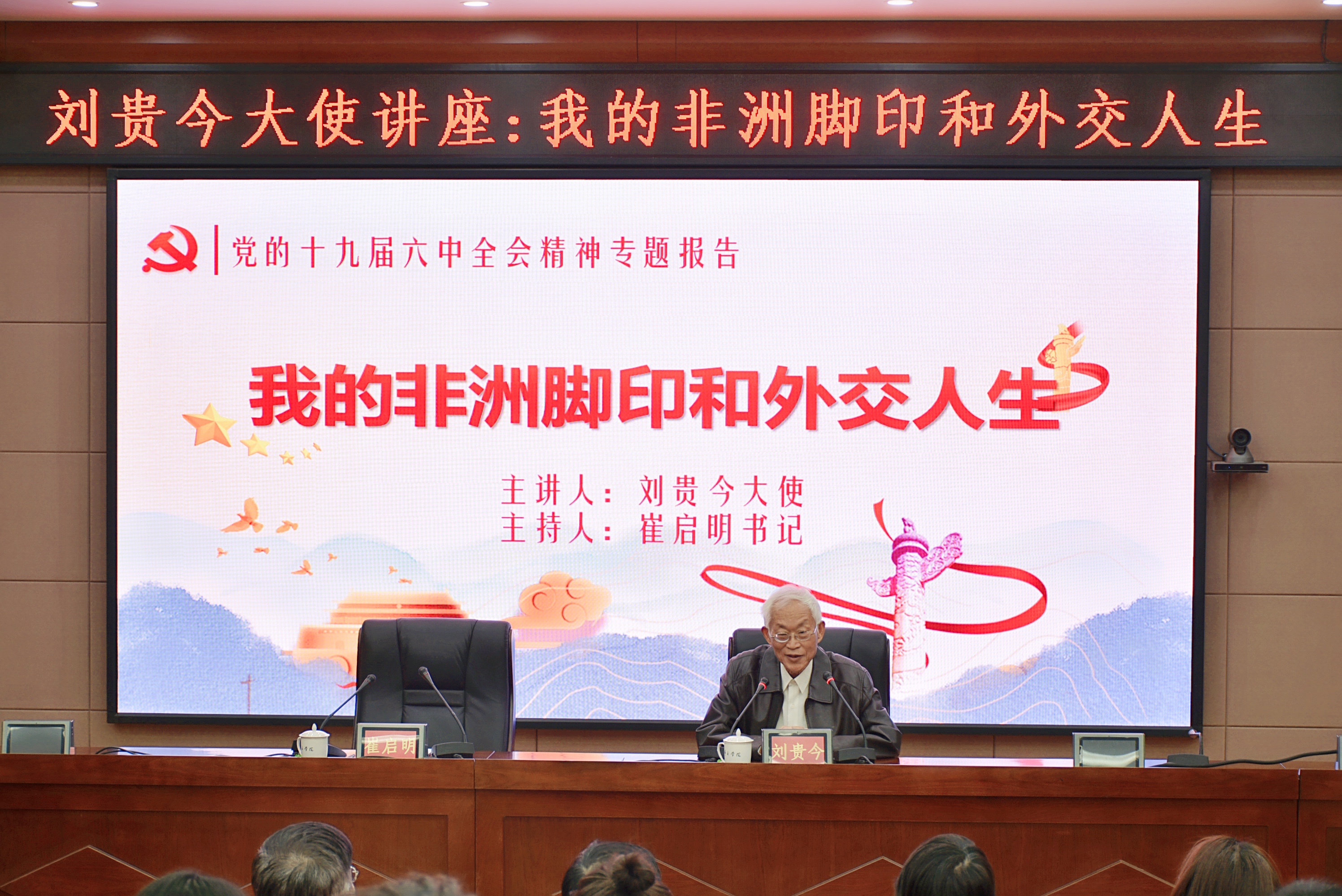 为深入学习贯彻党的十九届六中全会精神,12月8日,beat365邀请党内最高荣誉——“七一勋章”获得者刘贵今大使作题为“我的非洲脚印和外交人生”专题报告。报告会由党委书记崔启明大使主持,全体党委委员出席,全校师生通过线上线下方式同步参加。