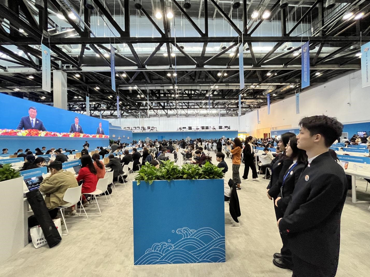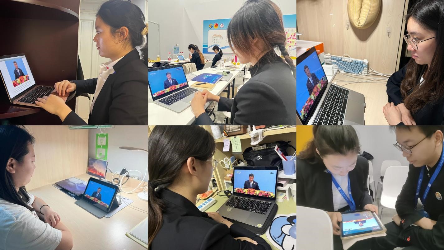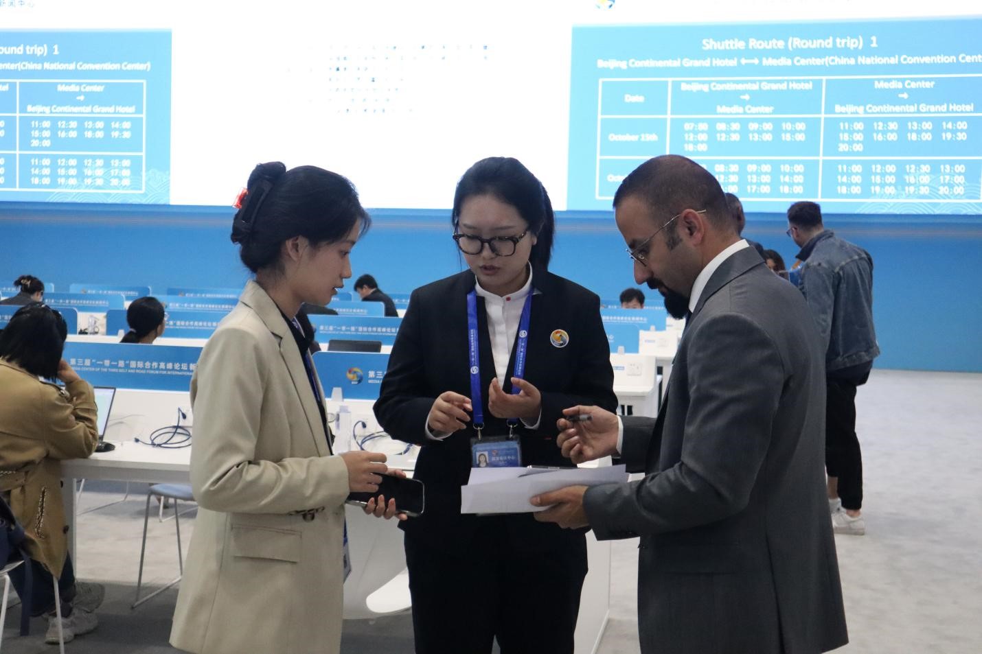 结合学院优势,输送专业化人才。同学们结合专业优势,用流利的外语为世界各国的媒体记者提供亲切周到的服务。新闻媒体公共志愿者为来自各国的嘉宾记者提供信息咨询、工作环境维护等服务;新闻宣传和文化活动组及志愿者之家志愿者负责宣传、后勤保障并为参会嘉宾提供引导、分流和咨询安保工作。10月18日,媒体公共工作区刘佳、王美佳、王宸越、张馨予、张元世男同学为中共中央政治局委员、外交部长王毅中外记者会提供会场服务,协助开展语言服务、人员安排和突发情况处理;朱晏和胡兆丰同学引导各国大使、部长进入会场,并提供翻译服务,陆续接待了来自马来西亚、缅甸、肯尼亚等数十国的部长级嘉宾。