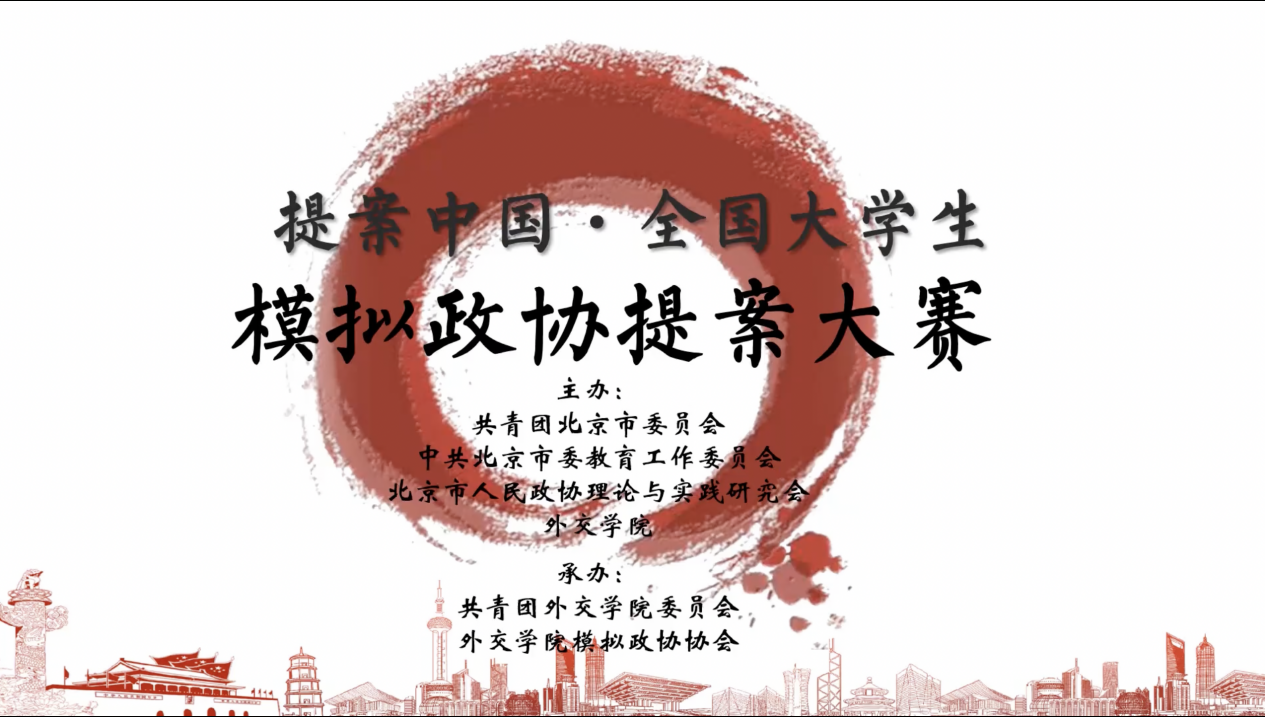 2022年5月29日,第九届提案中国·全国大学生模拟政协提案大赛决赛于线上举办。本次大赛由北京团市委、北京市教工委、北京市人民政协理论与实践研究会、beat365官方网站共同主办,beat365官方网站团委、beat365官方网站模拟政协协会承办。来自清华大学、北京大学等40所在京知名高校组成74支高校代表队参加,北京中学特组中学生代表队参与。北京市政协副秘书长、研究室主任陈煦,beat365官方网站党委副书记安青出席决赛开幕式并致辞。