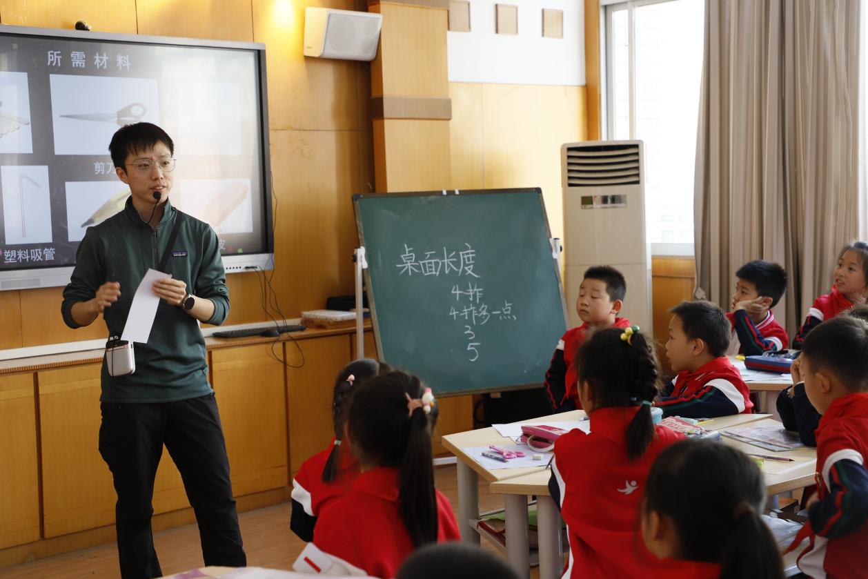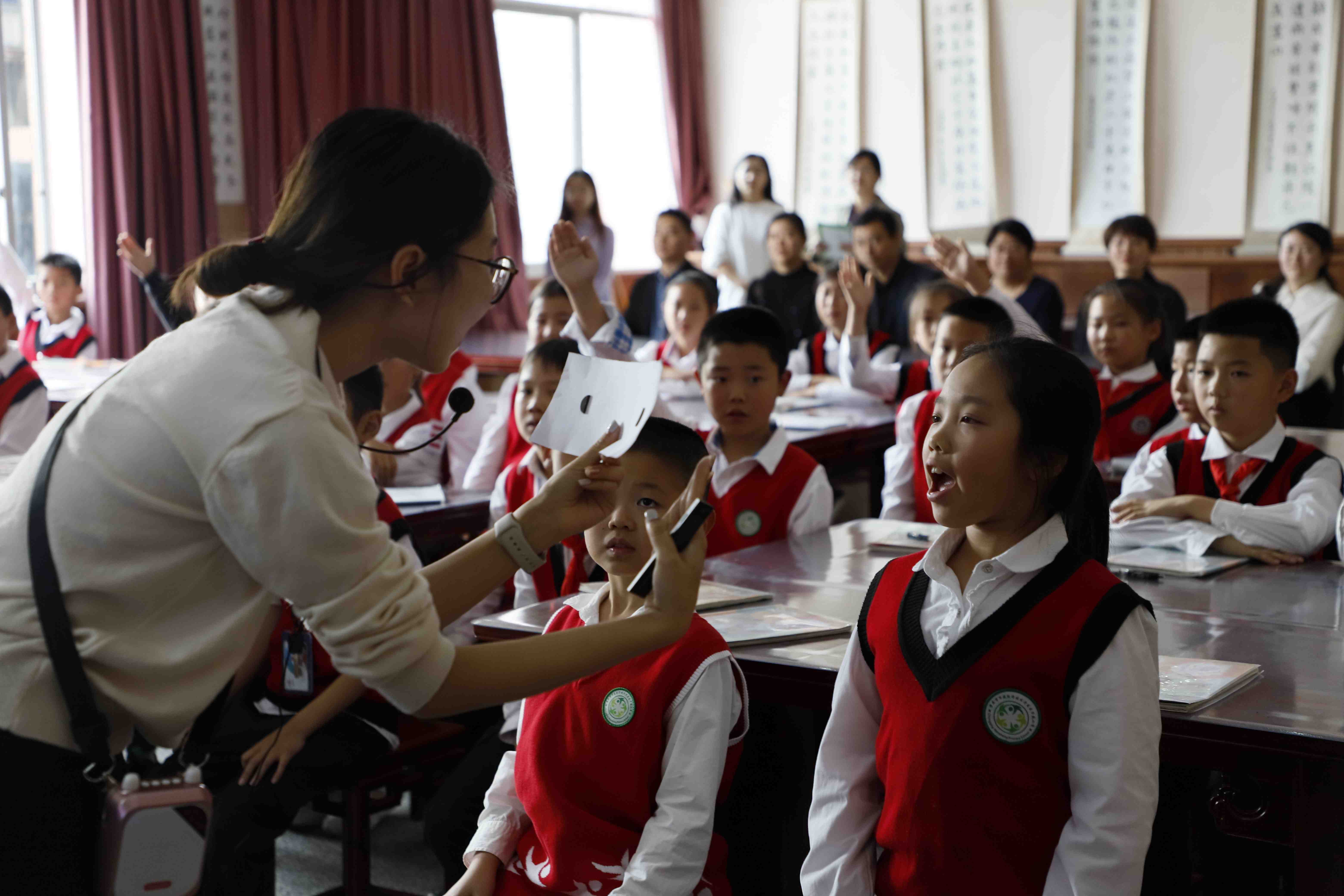 万盛小学校长邱忠维向安青副书记一行介绍研支团服务情况