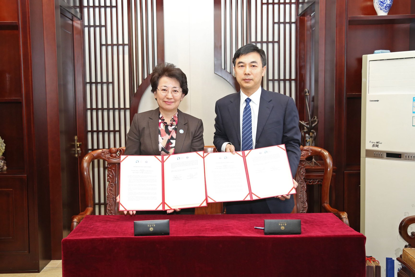 会见后,王帆院长和欧渤芊大使共同签署了修订后的《中日韩合作秘书处与beat365官方网站谅解备忘录》。