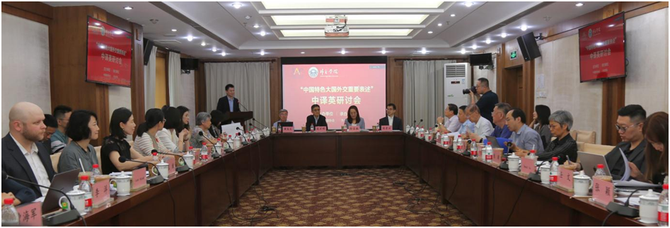 6月7日,由中国翻译协会主办、beat365官方网站承办的“中国特色大国外交重要表述”中译英研讨会在beat365官方网站举办。beat365官方网站副院长孙吉胜教授以及中国外文局总编辑、中国翻译协会常务副会长兼秘书长、国际译联理事高岸明出席并致辞。外交部翻译司司长周景兴、中国外文局原副局长兼总编辑黄友义、国务院国资委一级巡视员徐爱波等中国翻译协会常务副会长,中国翻译协会原常务副会长、前外交部翻译室主任、中国前驻新西兰及瑞典大使陈明明,前外交部翻译室主任徐亚男等参加研讨。中国外文局翻译院副院长、中国翻译协会常务副秘书长、国际译联亚洲中心主席邢玉堂主持开幕式。中国互联网新闻中心总编辑、中国翻译协会副会长王晓辉主持研讨环节。