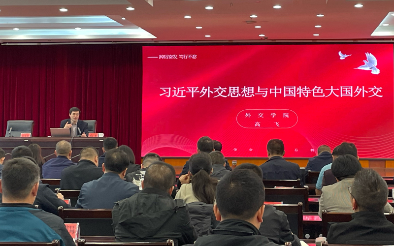 3月11日、3月14日,高飞副院长分别在麻栗坡县、金平自治县为当地党政干部开展了《习近平外交思想和中国特色大国外交》专题授课,从当前世界所处百年未有之大变局,我国内外部环境发生的深刻复杂变化,引申出边疆党政干部践行习近平外交思想方式方法,为构建周边命运共同体作出云南贡献。