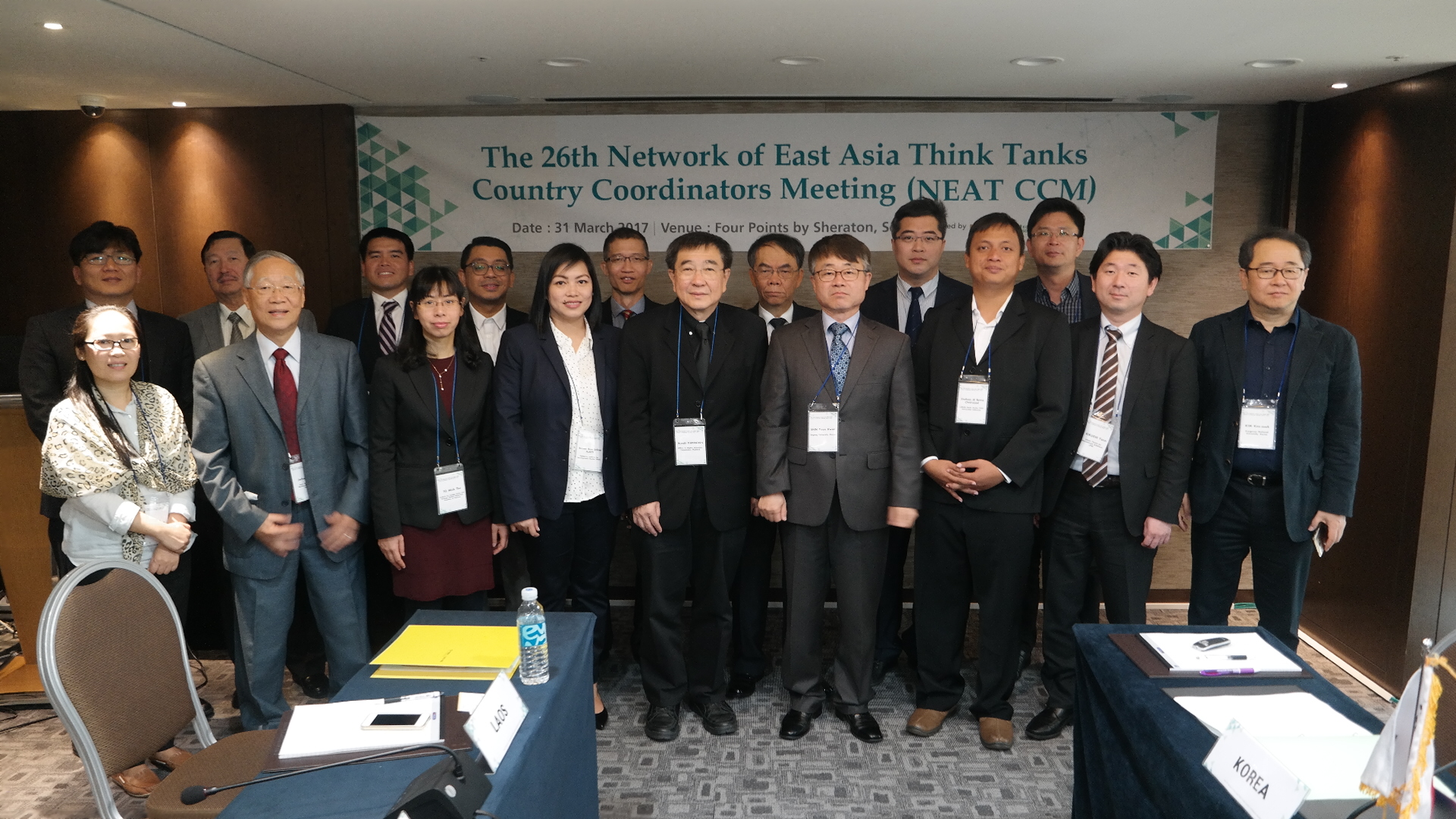 2017年3月31日,东亚思想库网络(Network of East Asian Think-tanks, NEAT)第26次国家协调员会议在韩国首尔召开。beat365亚洲研究所郭延军、崔海宁、苗吉以及中国社科院亚太与全球战略研究院研究员王玉主代表“NEAT中国”参会。 本次会议由“NEAT韩国”国家协调单位——韩国东南亚研究所主办,东盟10国(文莱缺席)和中国、日本、韩国三国代表与会。