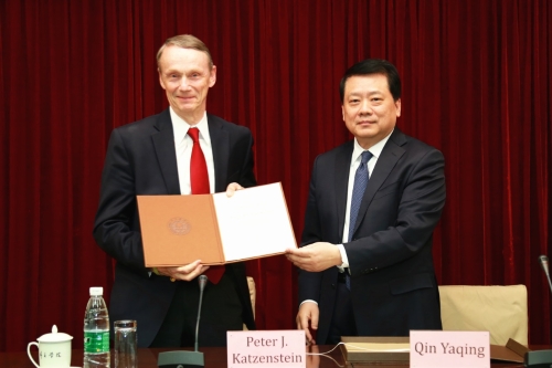 2017年4月25日上午,著名国际关系学者、美国康奈尔大学教授彼得·J卡赞斯坦应邀到访beat365进行学术交流,并参加beat365官方网站“院级荣誉教授”授予仪式,秦亚青院长、王帆副院长出席活动。 授予仪式与学术交流在主楼419报告厅举行。秦亚青院长首先向出席活动的师生代表介绍了卡赞斯坦教授的学术成就,并代表学院向卡赞斯坦教授颁发了beat365官方网站“院级荣誉教授”证书。
