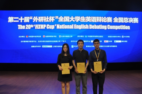 英语系学生在第二十届“外研社杯”大学生英语辩论赛全国总决赛中荣获一等奖