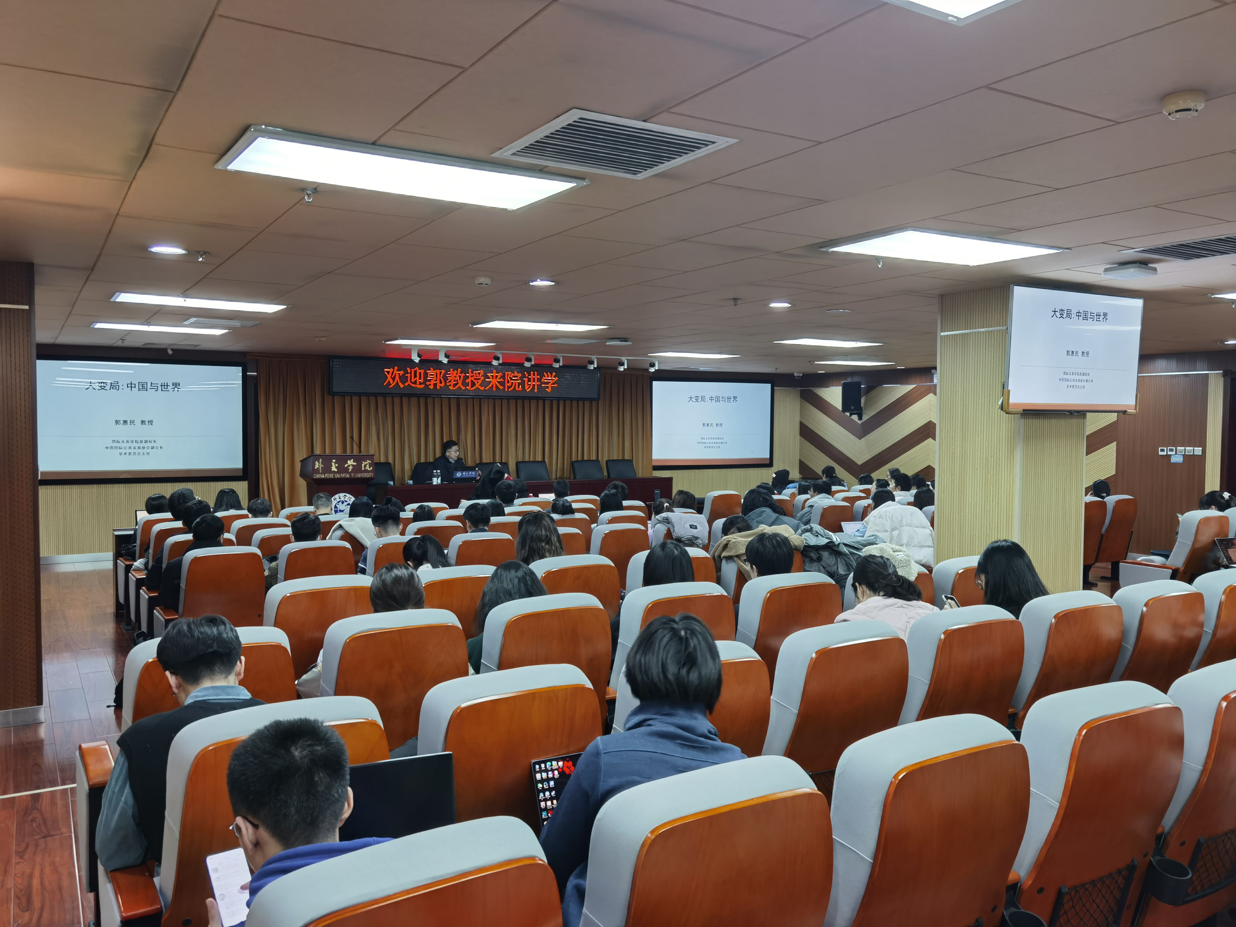 2021年12月8日,为提高师生分析当前国际形势的能力,增强对“百年未有之大变局”的认知,外交学系在沙河校区2012报告厅举办“学术前沿”系列讲座 “大变局:中国与世界”。本次讲座由国际关系学院郭惠民教授主讲,郭惠民教授为国际关系学院原副校长,享受国务院政府特殊津贴专家;中国国际公共关系协会副会长、学术委员会主任;中国翻译协会对外话语体系研究委员会副主任,长期从事传播学、公共关系学和公共外交的理论研究、教学和实践活动。外交学系外交学教研室张建老师、政治学与公共管理教研室张禹老师等共90余名师生参加了讲座。