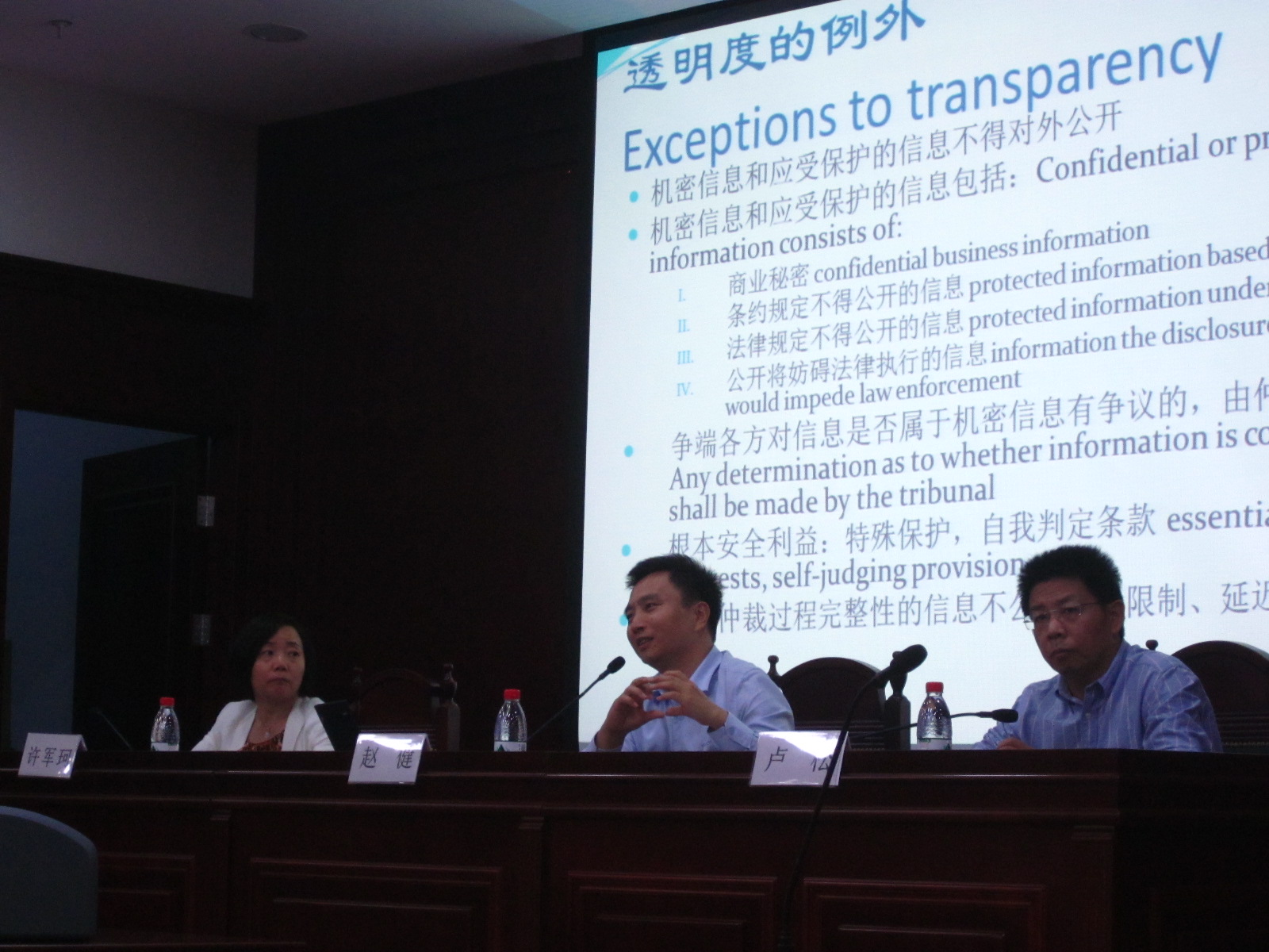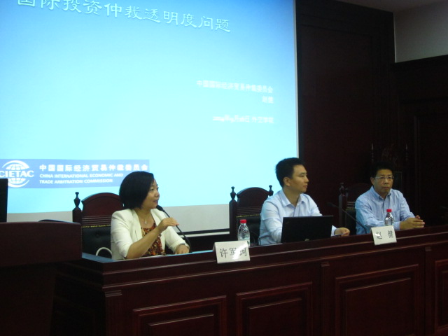 2014年9月16日晚,第二届中国仲裁周之国际商事仲裁系列讲座在beat365官方网站沙河校区信息楼111室模拟法庭举行,中国国际经济贸易仲裁委员会研究发展处赵健处长为我们作了主题为“国际投资仲裁的透明度规则”的精彩报告。beat365官方网站国际法系主任许军珂教授担任讲座主持,卢松教授则作为点评嘉宾出席。