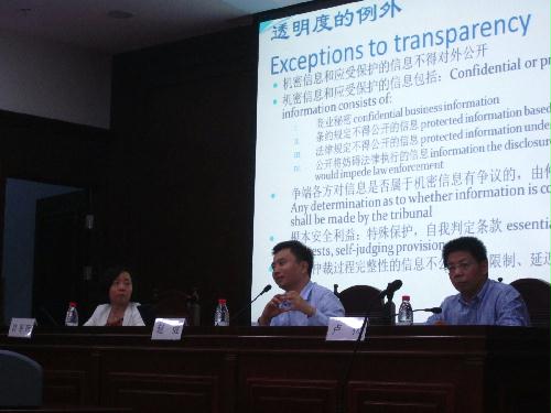 在点评阶段,卢松教授就赵健博士的报告首先做出了高度评价,认为赵健博士以实务者的角度为我们精炼而充分地阐述了国际投资仲裁的透明度规则,提供了很多经典的材料和数据,并进行了精彩的理论概括和演绎,值得我们深入研究。继而,为了照顾新生同学对改问题的理解,卢松教授还专门介绍了国际投资仲裁的基础知识,以帮助我们更好地理解了国际投资仲裁及透明度规则。