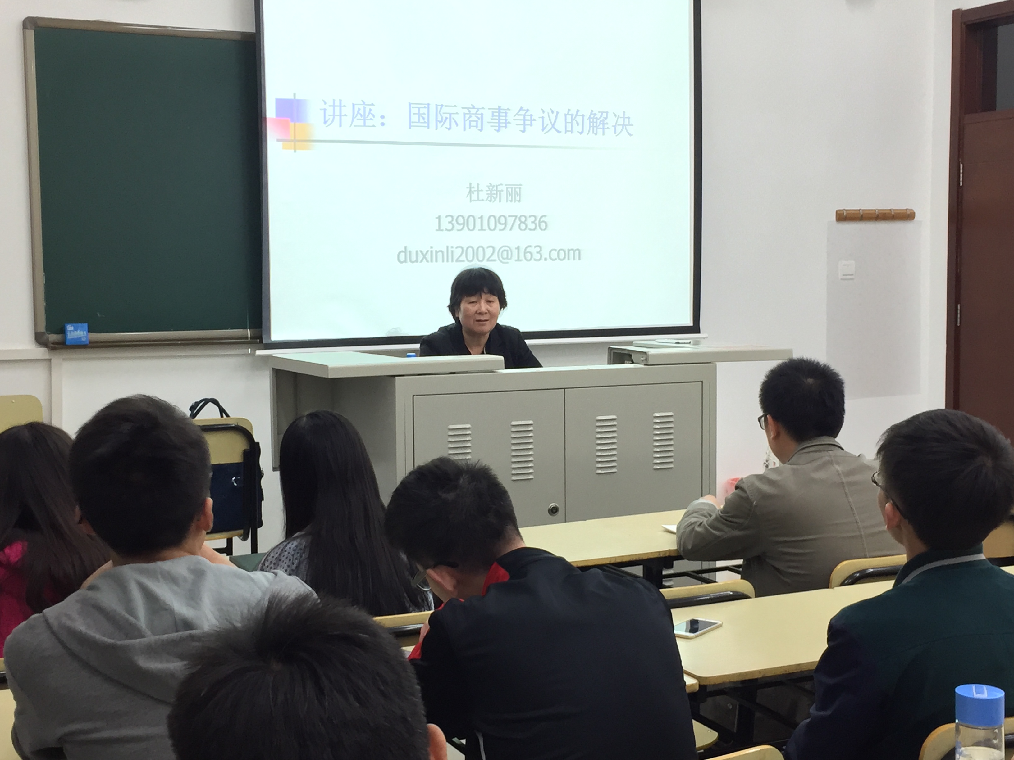 2015年10月8日晚上,中国政法大学国际法学院杜新丽教授受国际法系之邀到沙河校区为同学们带来一场以“涉外商事争议的解决”为主题的学术讲座。本次讲座为国际法系本年度“涉外卓越法律人才教育培养系列讲座”的第二场。讲座由国际法系教师杨赟博士主持,国际法系教师严文君博士出席,国际法系大三学生及研究生参会。