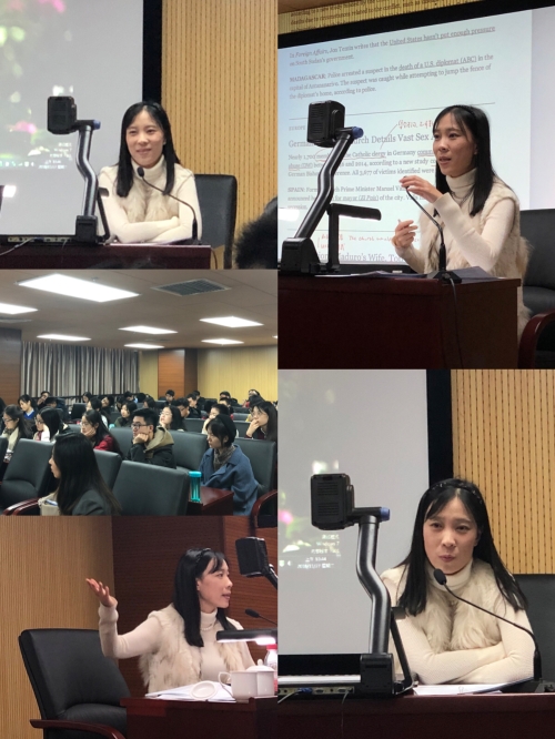 张蕾副处长对外媒的细致分析以及高雅的学术风范赢得了师生们掌声。同学们纷纷表示,讲座信息量大,学术性强,收获颇丰,也对阅读外媒有了更浓厚的兴趣,对外交翻译有了更深刻的理解。