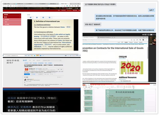 国际法系任课教师根据不同课程的特点,通过录制教学视频、在线直播教学等多种形式进行授课。为防止直播时网络出现问题,任课教师提前一天与同学们调试网络视频情况,把课堂资料发给学生,并做好了突发情况下的教学预案,充分保障授课质量。